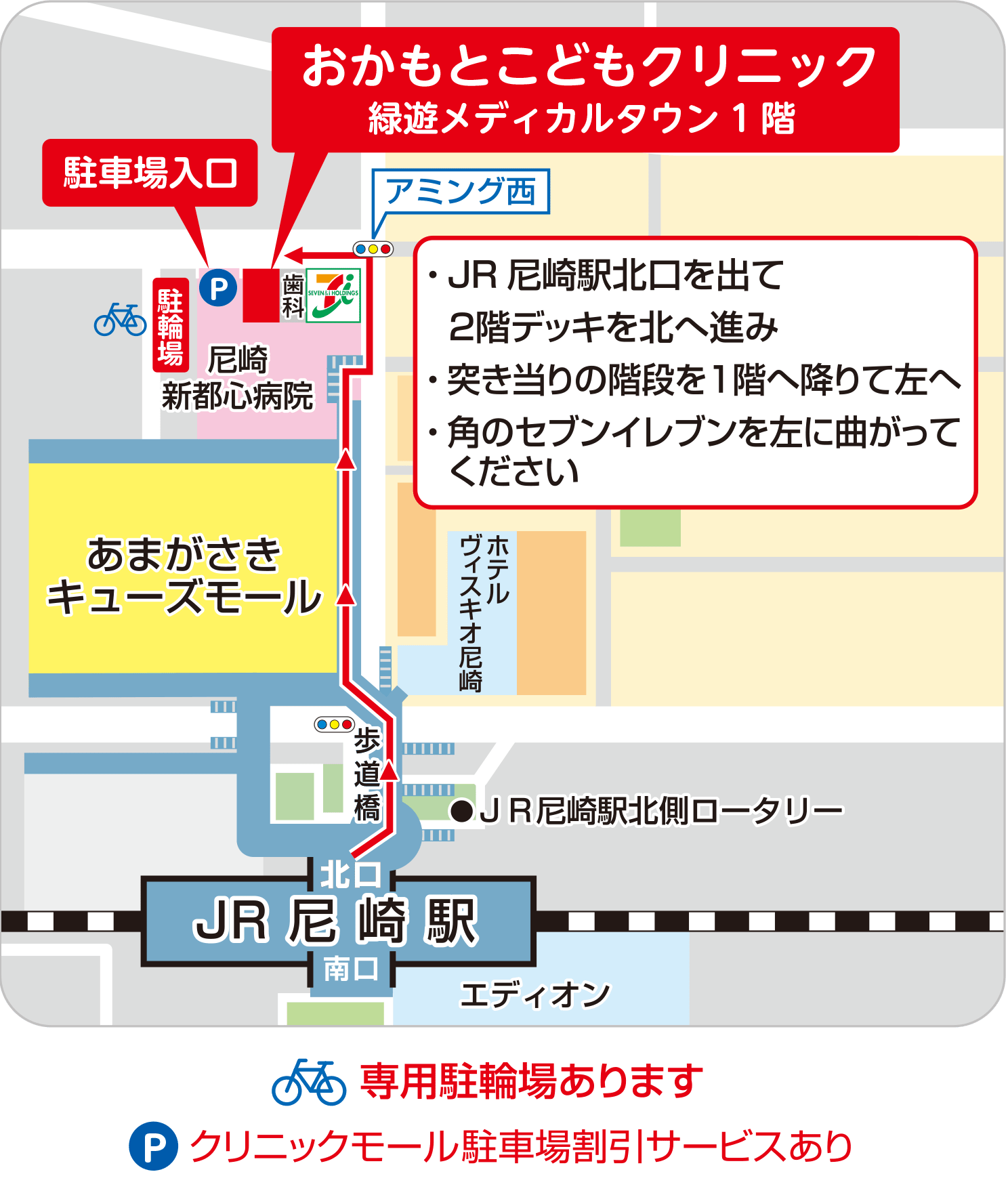 おかもとこどもクリニックはJR尼崎駅前の緑遊メディカルタウン(尼崎新都心病院)1階の小児科クリニックです。丁寧な診察をモットーに、地域の皆さまに信頼される温かく質の高い医療を提供していきたいと考えています。